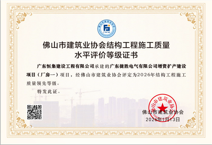 恒集-结构工程施工质量领先等级证书202
